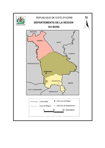 On note également neuf (09) sous-préfectures (Tiéningboué, Bouan-dougou, Dianra-Village, Marandallah, Sarhala, Kongasso) et six (06) communes (Mankono, Dianra, Kounahiri, Tiéningboué, Sarhala et Kongasso) et cinq cent soixante et un (561) villages.